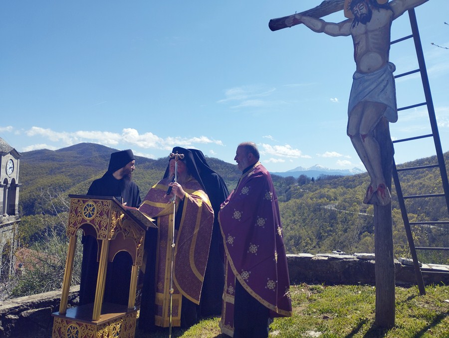«Ο ευσχήμων Ιωσήφ από του ξύλου καθελών το άχραντόν σου Σώμα», έψαλλαν γλυκά και κατανυκτικά οι πατέρες της Ιεράς Μονής Παναγίας Κορώνης Καρδίτσης εκεί όπου σήμερα το μεσημέρι τελέστηκε η ακολουθία του Εσπερινού καθώς και η αναπαράσταση της Αποκαθήλωσης παρουσία πλήθους πιστών σκορπώντας ρίγη συγκίνησης.